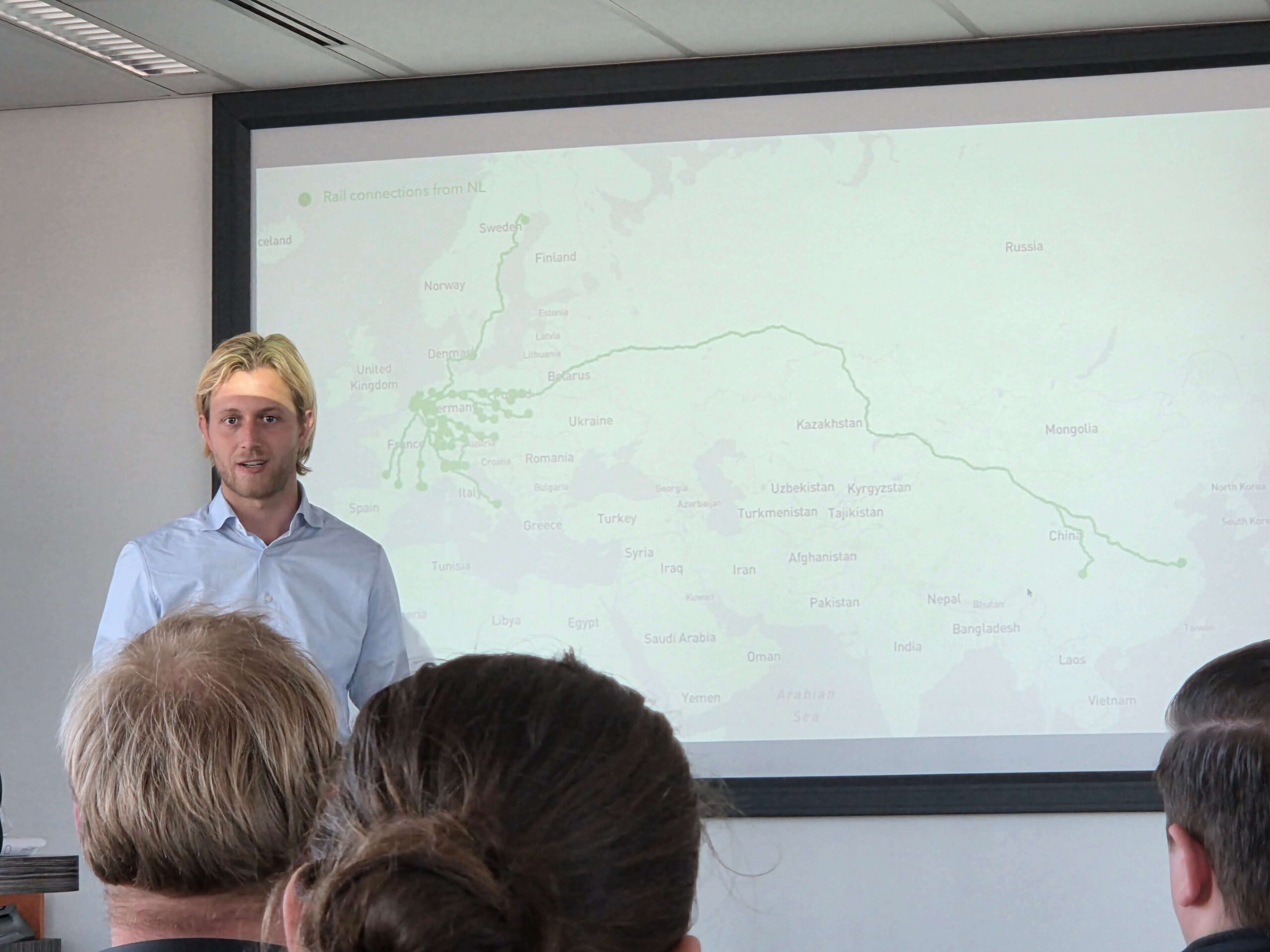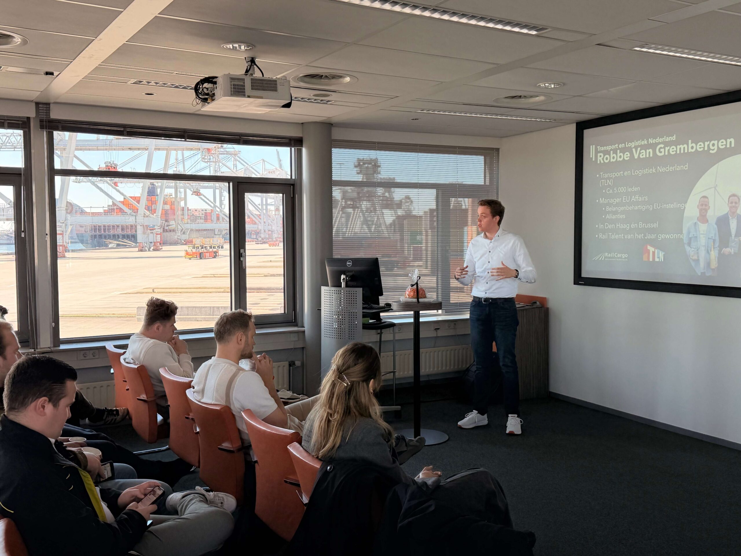 In het inhoudelijke programma gaven Wietse Bruinsma (Rail Cargo) en Robbe van Grembergen (TLN) een toelichting over hoe het spoorgoederenvervoer is georganiseerd in Nederland en hoe Europese besluitvorming hier een belangrijke rol in speelt. Robbe liet zien hoe complex het proces in Brussel is: met 27 lidstaten duurt het vaak twee tot vier jaar voordat nieuwe wetgeving daadwerkelijk van kracht wordt.