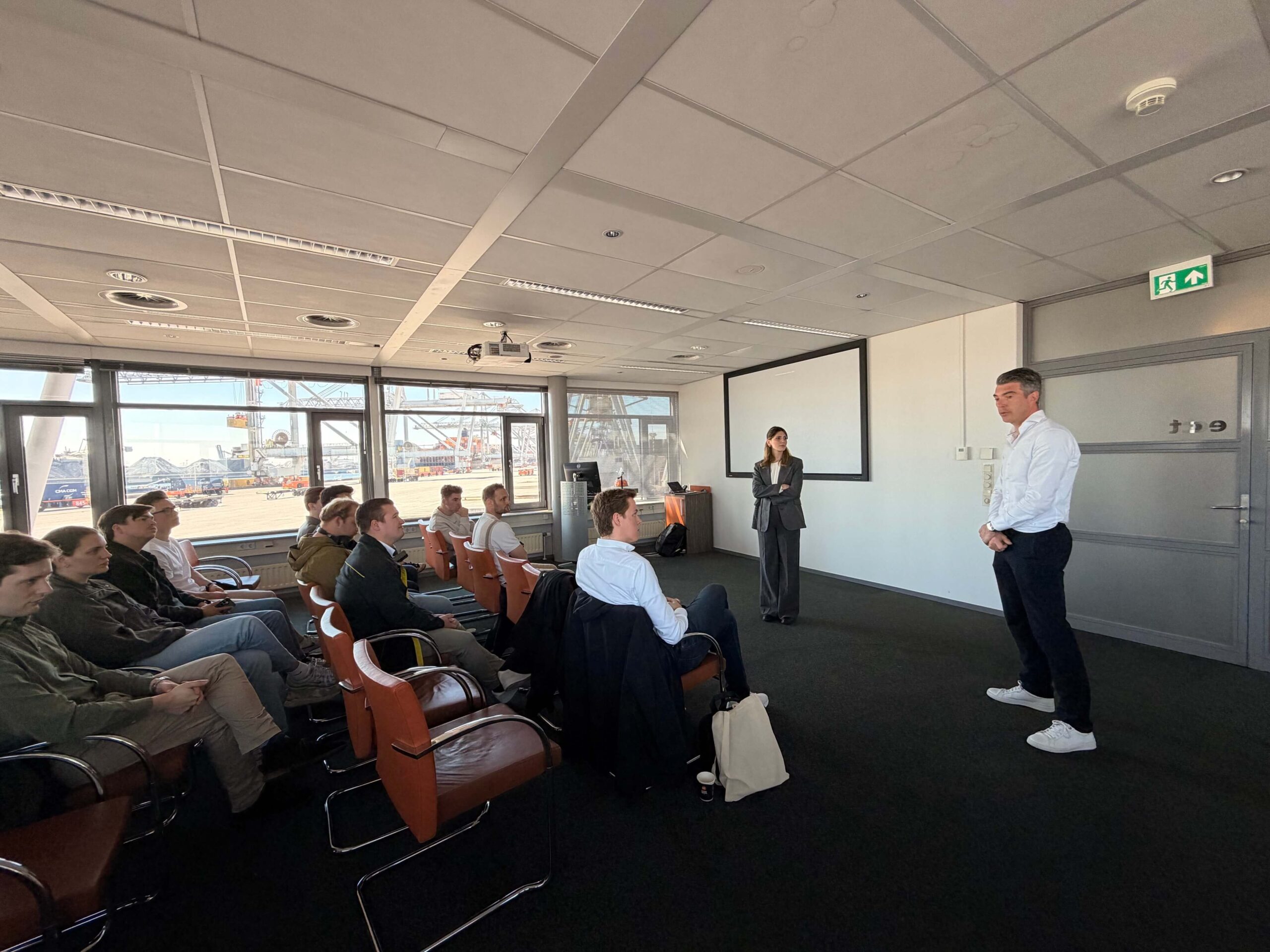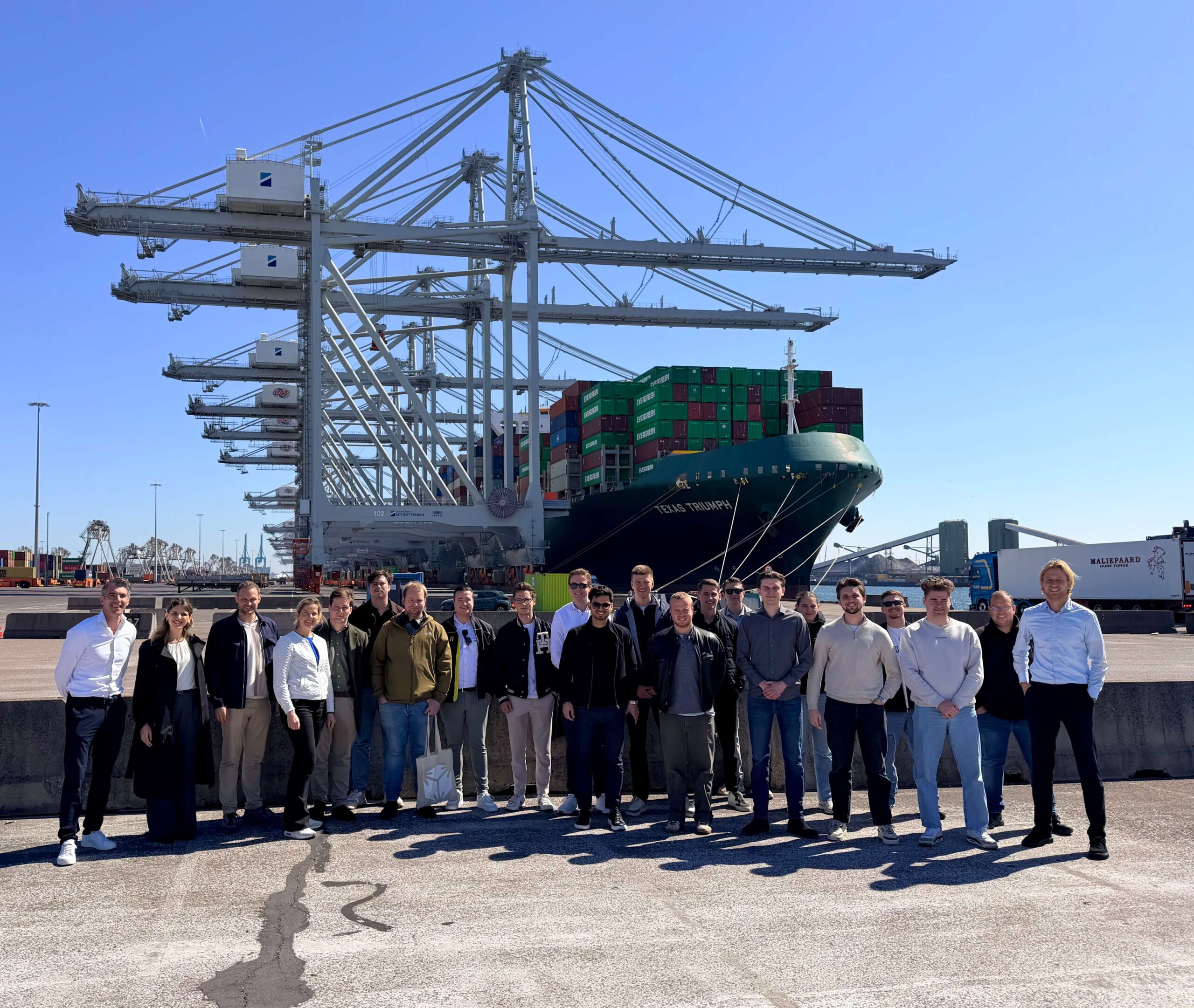 De groep werd ontvangen door Sebastiaan van Dorsser bij Hutchison Ports ECT Rotterdam. Tijdens de rondleiding over de terminal werd zichtbaar hoe ver de automatisering in de containerafhandeling inmiddels is doorgevoerd. Containers worden grotendeels geautomatiseerd behandeld, waarbij efficiëntie en schaal centraal staan.